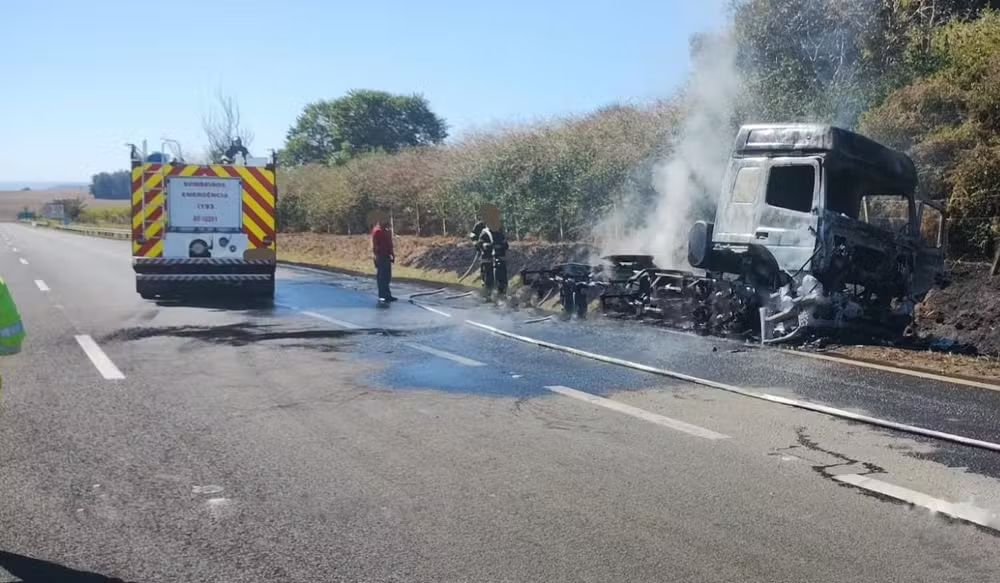 O motorista conseguiu estacionar rapidamente no acostamento e saiu da carreta, enquanto as chamas se espalhavam com velocidade. O Corpo de Bombeiros e a Polícia Rodoviária foram acionados ao local dos fatos, onde os focos foram controlados.
