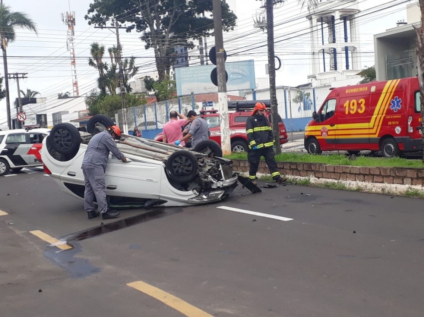 Um motociclista ficou ferido após se envolver em acidente com um carro na manhã desta sexta-feira (7), na Avenida Rio Branco, no Centro de Marília (SP) (90 km de Ourinhos). O carro chegou a capotar.