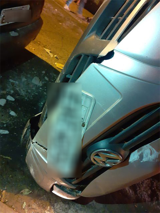 Segundo informações, o condutor de um veículo VW/Fox, cor prata, com placas de Bernardino de Campos, que estaria fugindo da Polícia Militar, perdeu o controle do carro e atingiu o muro da casa, que ficou destruído e um veículo GM/Celta, de cor preta, que estava devidamente estacionado.