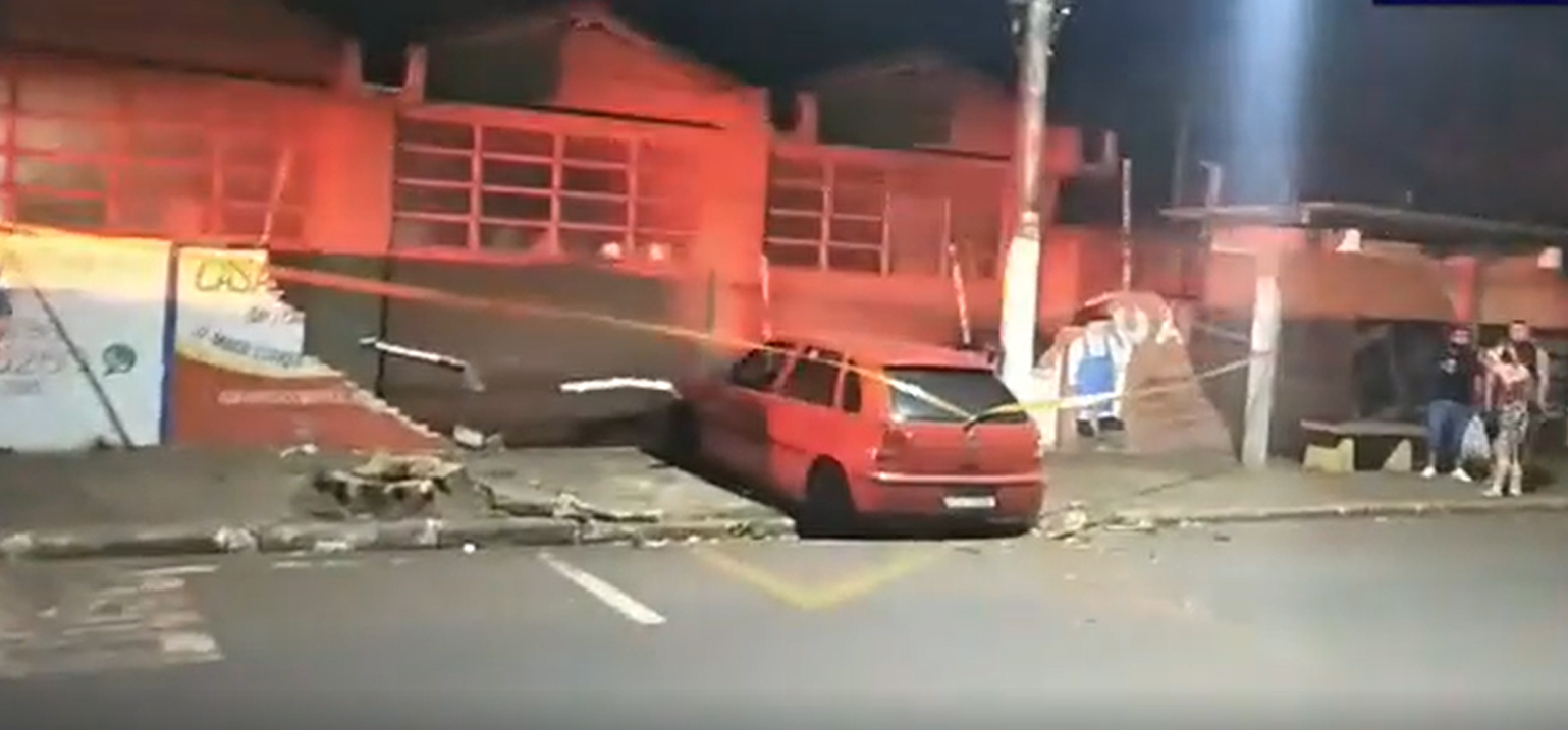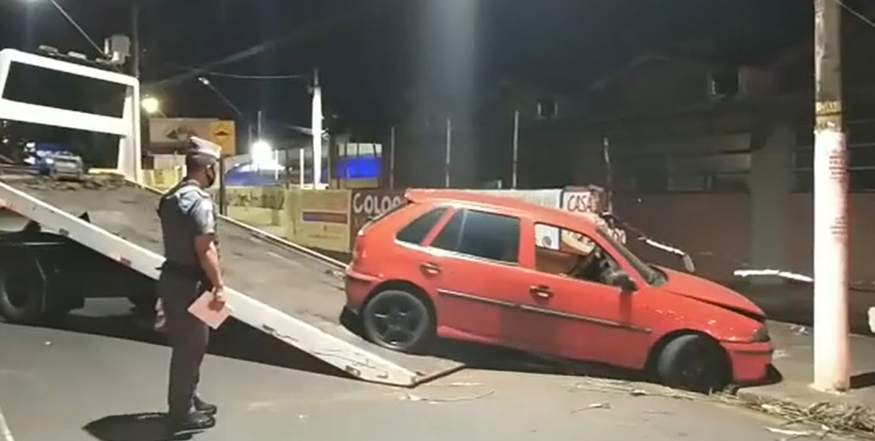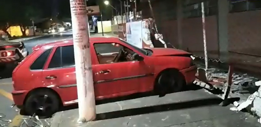 Um acidente chamou a atenção na noite deste sábado, 3, em Ourinhos, após um veículo cruzar a Avenida Domingos Camerlingo Caló, nas proximidades do nº 1675, no Jardim Matilde e atingir o muro da escola Estadual Proª Maria do Carmo Arruda da Silva.