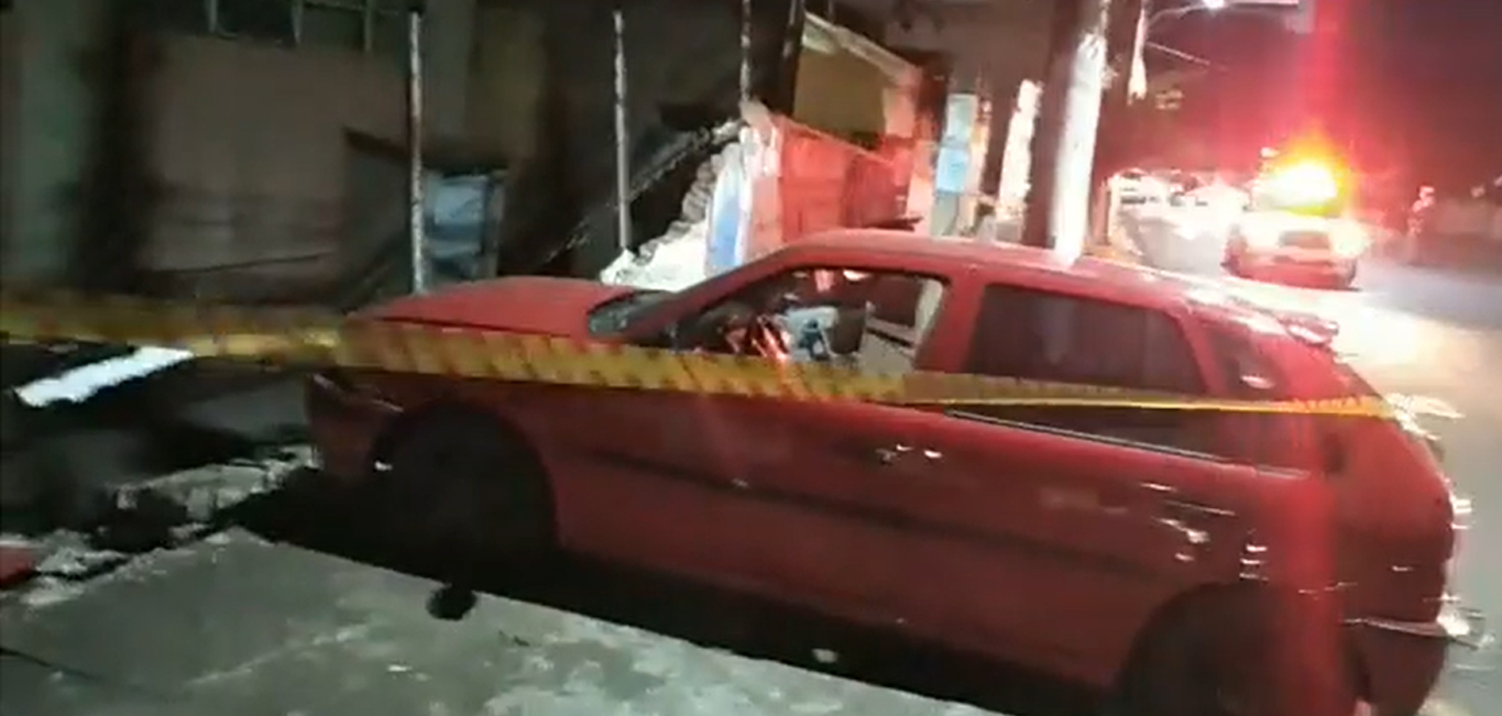Carro destruiu muro da escola - Foto: Reprodução/ TV SAN