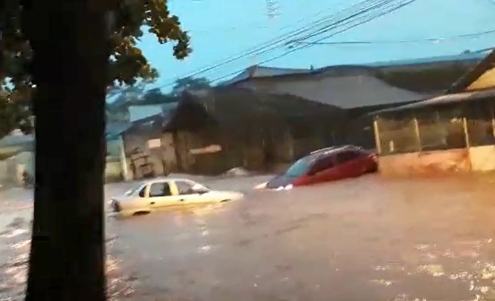 A avenida Lélio Piza ficou totalmente alagada. O mesmo aconteceu com a Avenida Tamoios, no centro da cidade, e a Rua Caingangs.