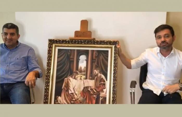 O vice Carlos Alberto Daher e o prefeito Edgar de Souza durante live feita logo após a sentença de cassação: "Vamos recorrer ao STF" — Foto: Facebook/Reprodução
