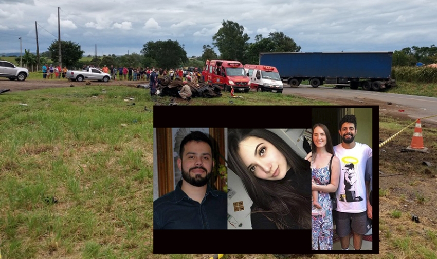 As vítimas fatais são dois casais e uma criança de um ano e dois meses. Todos estavam no carro, que capotou com o impacto da colisão.