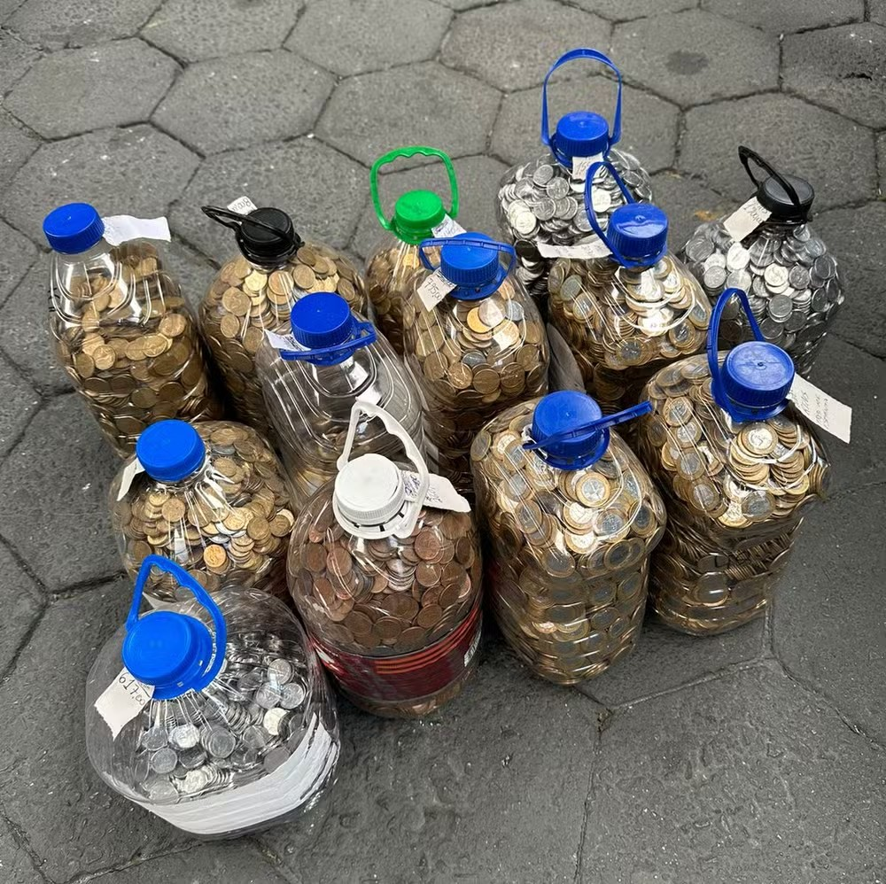 "Eu sempre guardo assim, já é a segunda vez. E tem que trocar com os outros quando tem um volumezinho legal. Vou começar de novo, só que agora só com [moedas] de um real, têm muito volume aquelas moedas", explicou.