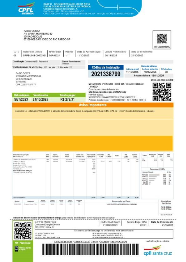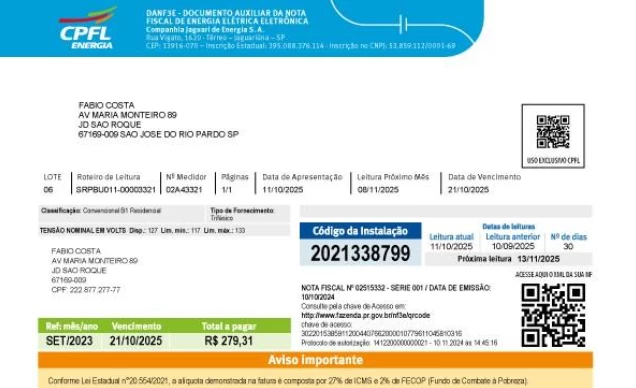 Além disso, a mudança atende a uma determinação da Secretaria da Fazenda do Estado, que estabeleceu um novo formato de emissão da Nota Fiscal (NF3e) por parte das distribuidoras de energia. A medida resultou na inclusão de um segundo QR Code na parte central da conta, que remete à NF para o cliente.