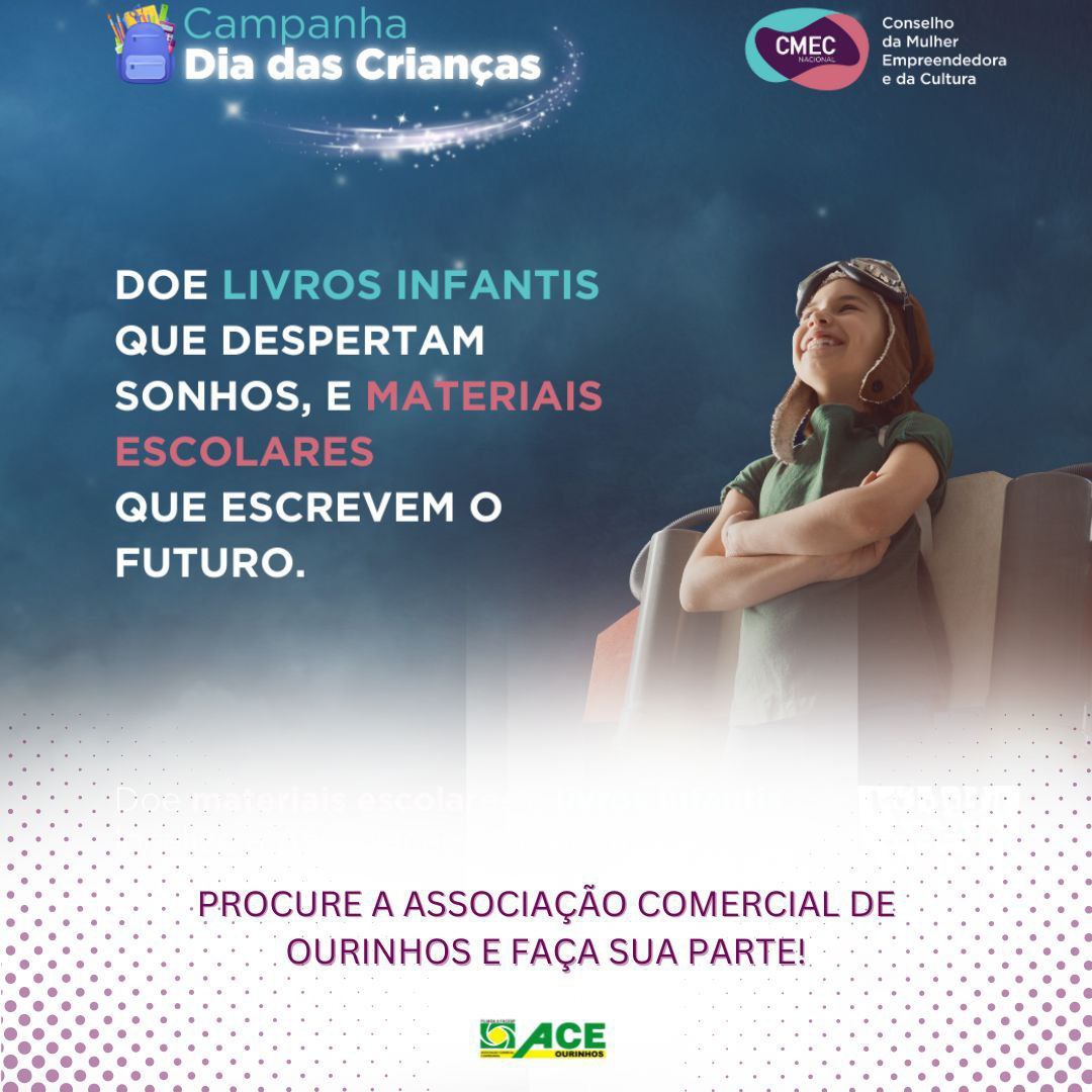 A Campanha do Dia das Crianças 2024, organizada pelo CMEC da ACE tem como objetivo arrecadar livros, brinquedos e roupas para crianças carentes.