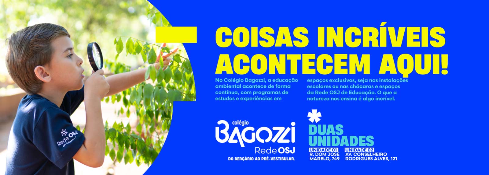Outra decisão importante é a continuidade do sistema de ensino COC no Bagozzi Jean Piaget, enquanto o Bagozzi Seminário manterá o sistema Objetivo, já utilizado atualmente. Além disso, o material socioemocional LIV (Laboratório de Inteligência de Vida) será implementado em ambas as unidades, atendendo estudantes do Pré ao 3º ano do Ensino Médio.