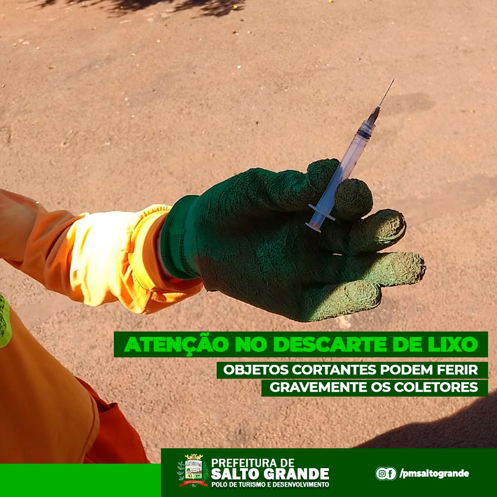 “Os coletores são vítimas constantes de acidentes causadas por lixo mal disposto. Cacos de vidro, agulhas, arames entre outros materiais perigosos devem ser embrulhados em papelão ou dentro de uma garrafa PET antes de serem colocados no saco plástico”, destacou nota divulgada pela Prefeitura de Salto Grande.