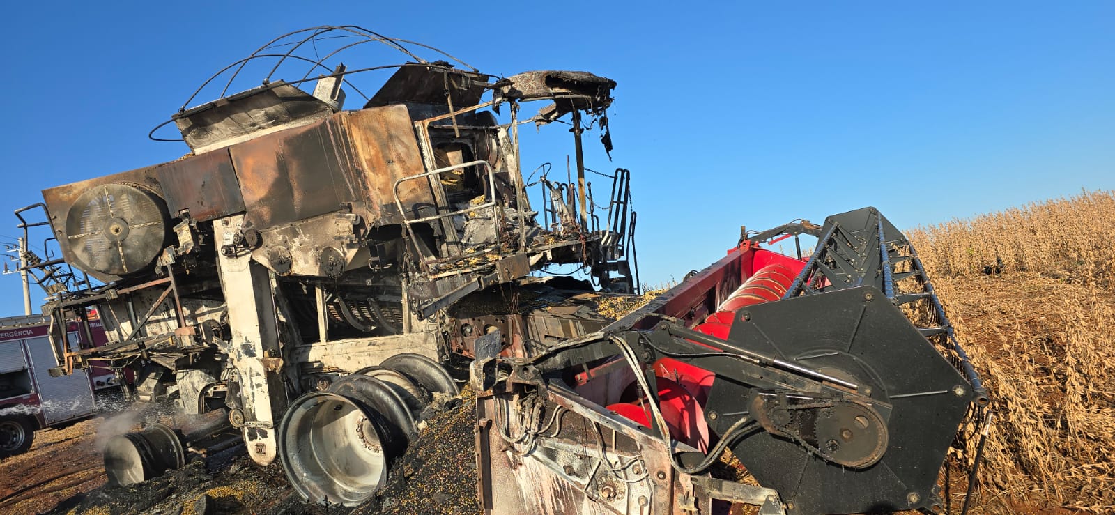 De acordo com informações apuradas pelo portal Diário Cidadão, o motorista que operava o maquinário percebeu um barulho estranho durante o trabalho no campo. Ao verificar a situação, constatou que a colheitadeira já estava em chamas. Imediatamente, ele acionou o Corpo de Bombeiros, porém o fogo se espalhou rapidamente e tomou conta da máquina.