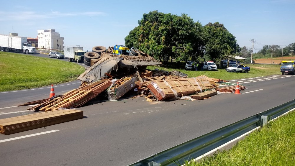 Segundo a Polícia Rodoviária Estadual, o motorista seguia pela alça de acesso para transitar na rodovia no sentido de Garça (SP), quando perdeu o controle e acabou tombando o veículo. Parte da carga ficou espalhada na pista.
