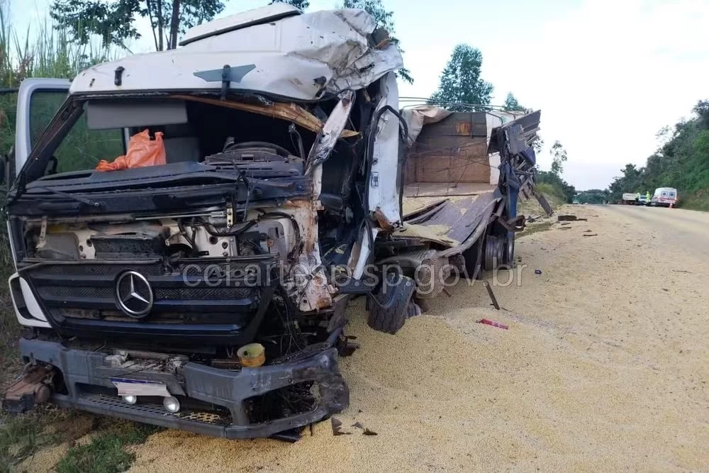 Uma colisão frontal entre uma carreta carregada de soja e um caminhão interditou totalmente a Rodovia Eduardo Saigh (SP-255), na altura do quilômetro 347, em Itaporanga (SP), na manhã desta segunda-feira (10). O acidente ocorreu por volta das 6h e deixou uma vítima fatal e outra gravemente ferida.