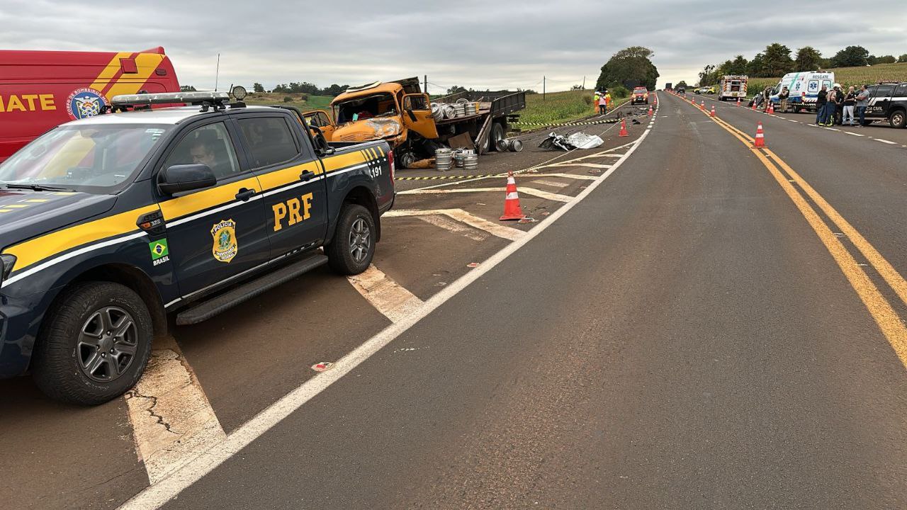 A colisão frontal envolveu um caminhão Mercedes-Benz amarelo, com placas de Cruzeiro do Oeste (PR), e um Renault Captur branco, com placas de Botucatu (SP). O acidente ocorreu por volta das 13h50 e mobilizou diversas equipes de resgate e segurança.