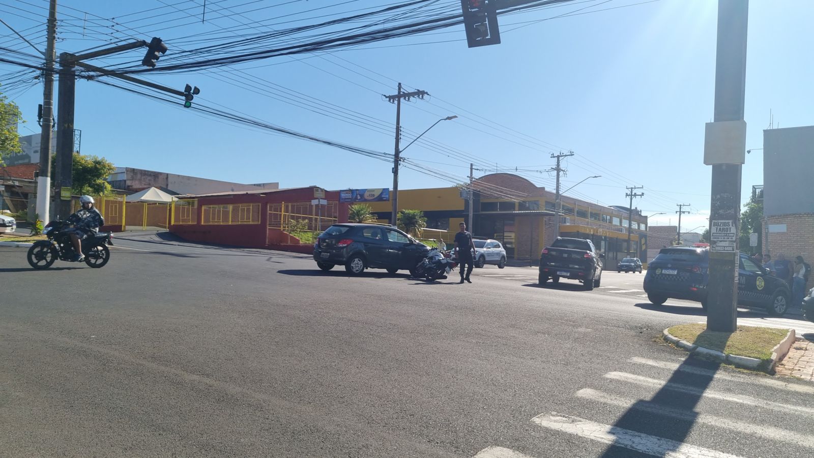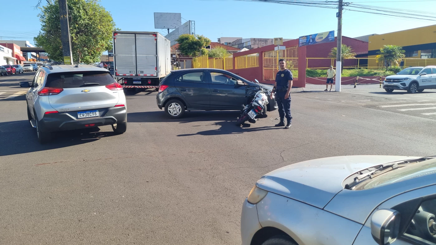Um acidente grave envolvendo um carro e uma motocicleta foi registrado na manhã desta quarta-feira (4), no cruzamento da Avenida Gastão Vidigal com a Rua Expedicionário, no Jardim Matilde, em Ourinhos.