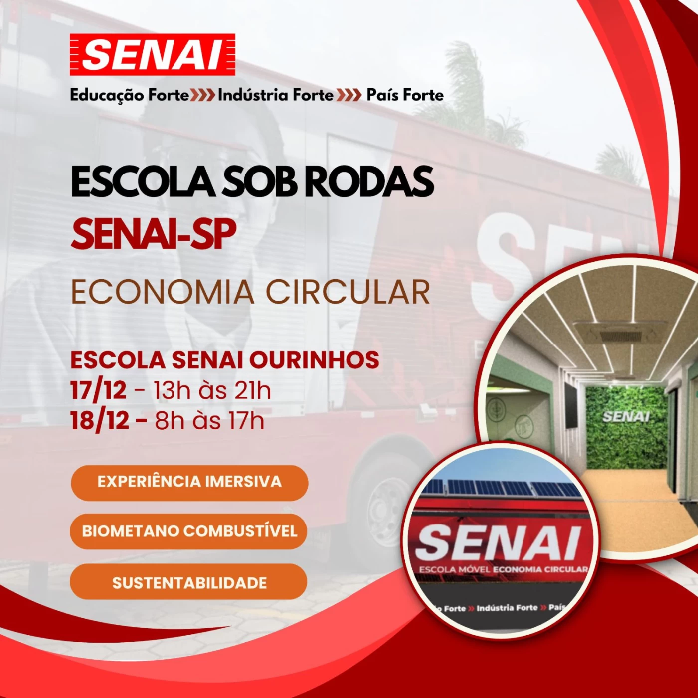 A partir desta terça-feira, 17 de dezembro, Ourinhos recebe a "Escola sob Rodas do SENAI-SP”, na escola do SENAI Ourinhos, na Rua Vitório Christoni, 1500, na Vila Sao Luiz.