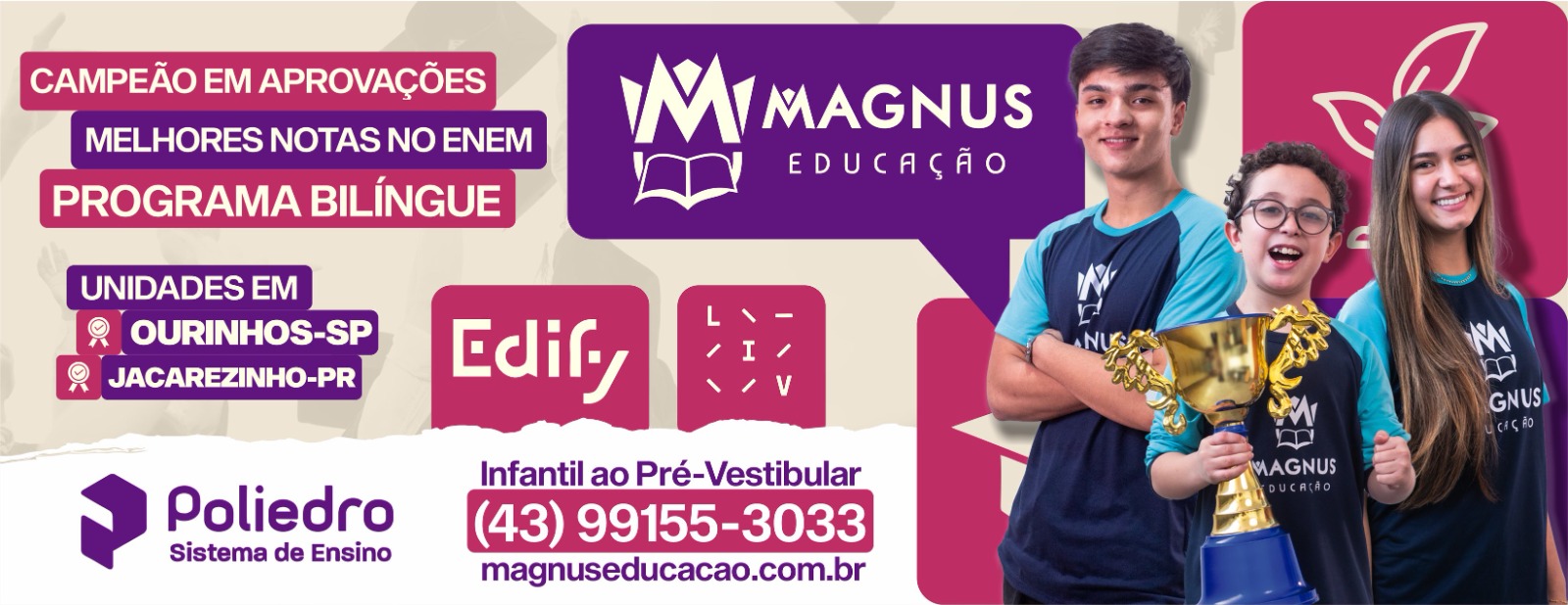 O Colégio Magnus Educação, com unidades em Jacarezinho (PR) e Ourinhos (SP), mais uma vez reafirmou sua posição de destaque ao dominar o vestibular UENP 2025. Neste ano, foram mais de 15 aprovações, com resultados impressionantes que incluem o 1º lugar em Odontologia, um dos cursos mais concorridos da universidade, e o 1º lugar em Ciências Biológicas, além de conquistas marcantes como o 2º, 3º e 4º lugares em Direito.