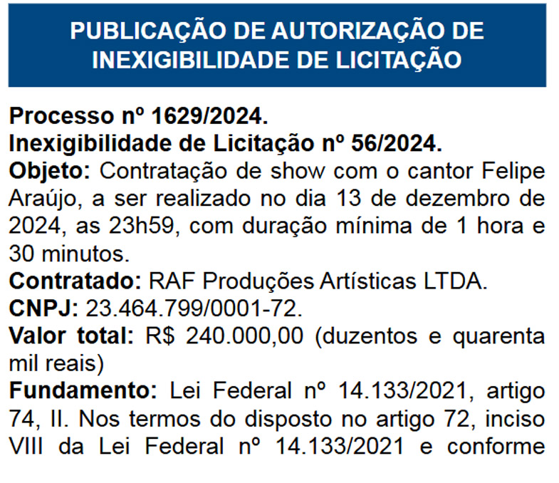 Felipe Araújo – Horário: 23h59 | Valor: R$ 240.000,00