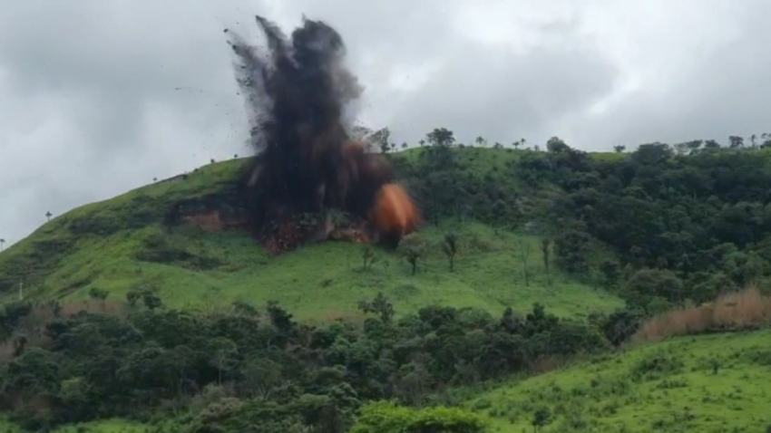 Segundo a concessionária, foi necessário o uso de uma quantidade controlada de explosivos para desprender o bloco. Ao solo, foram levados cerca de 4,8 mil metros cúbicos de rocha, que pesam em torno de 9 mil toneladas.