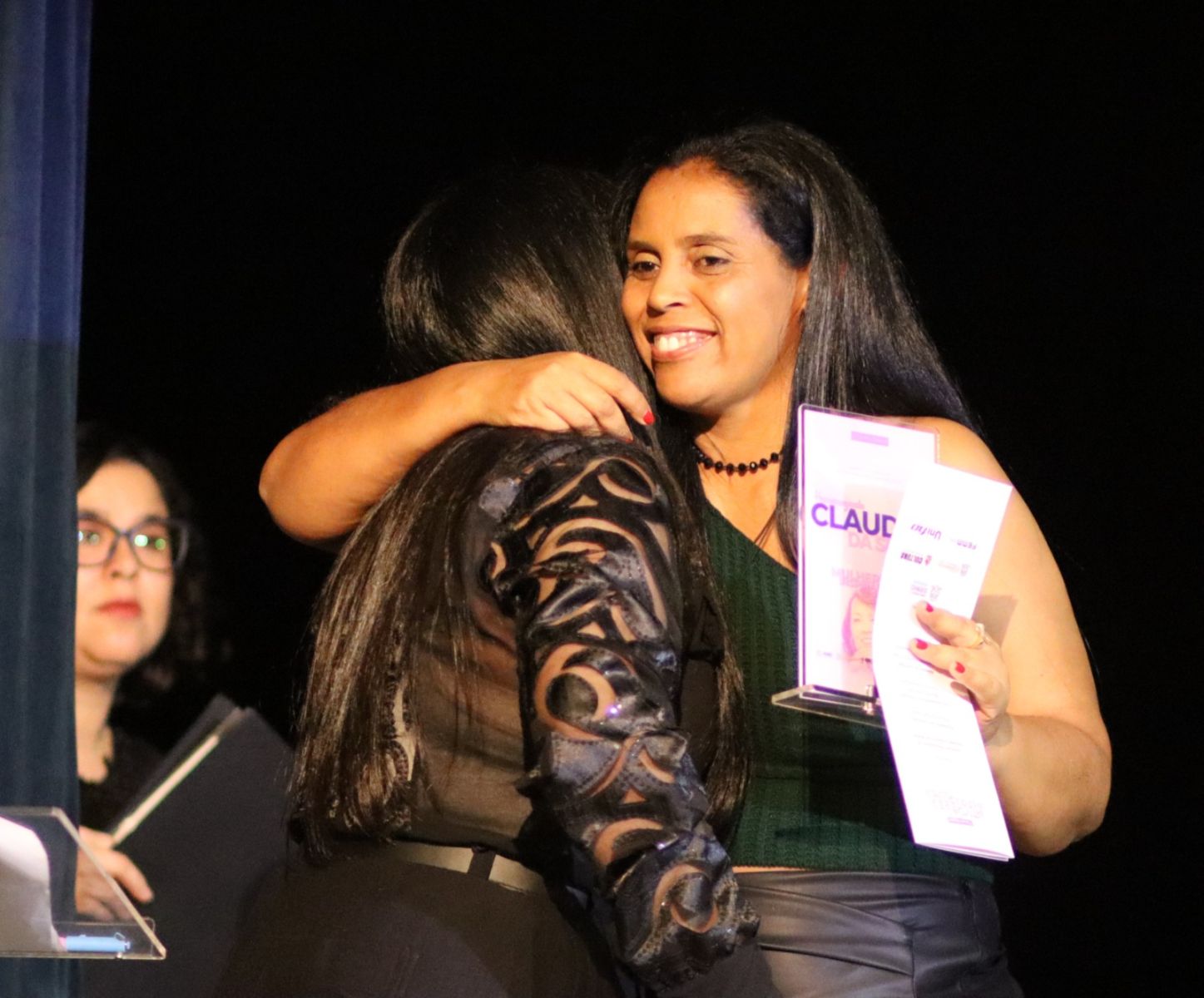 Cláudia Silva, presidente do Recicla, recebendo o troféu