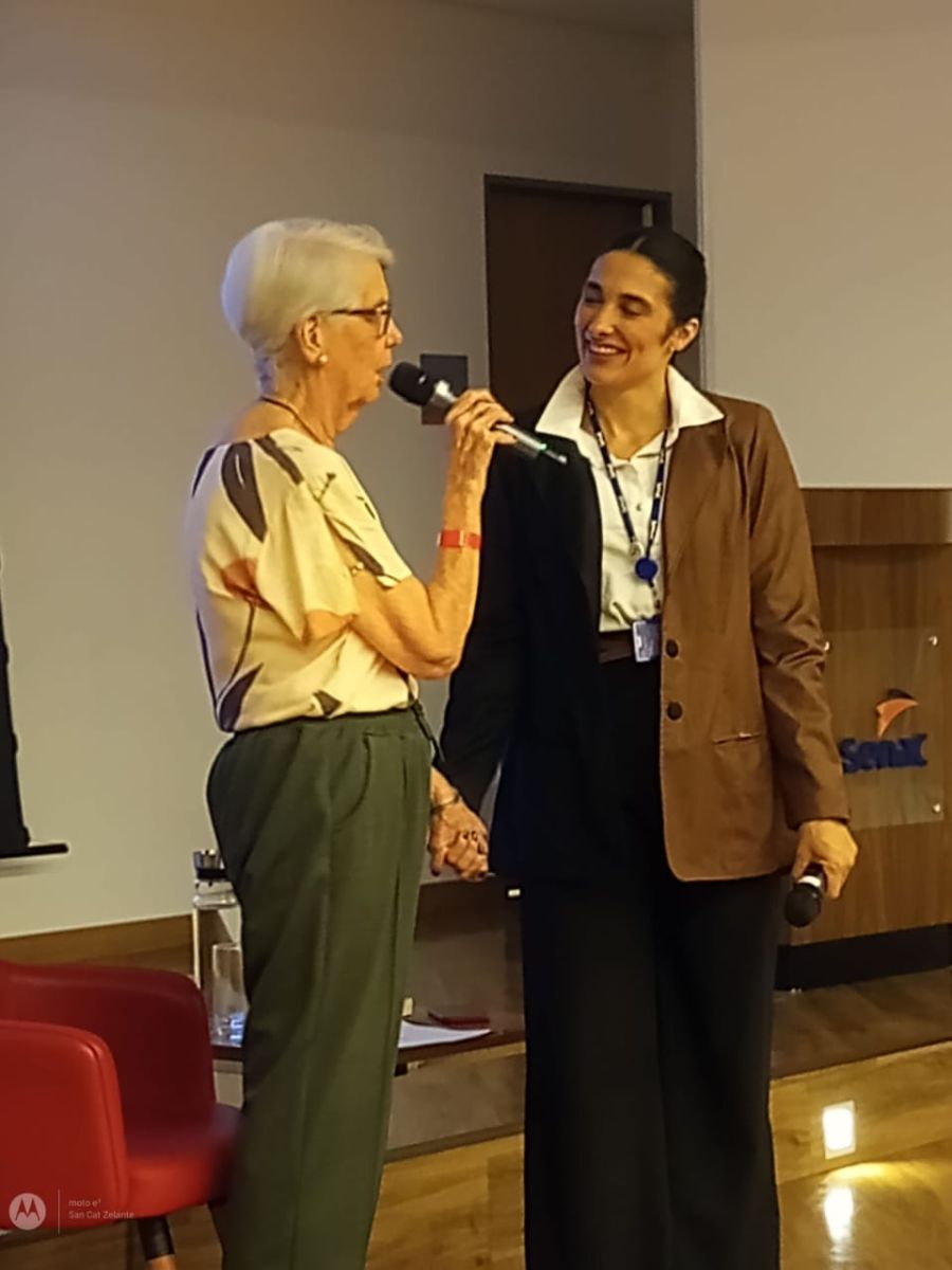 Gerda Kewitz com Fabiana Damiano da Silva, do Senac