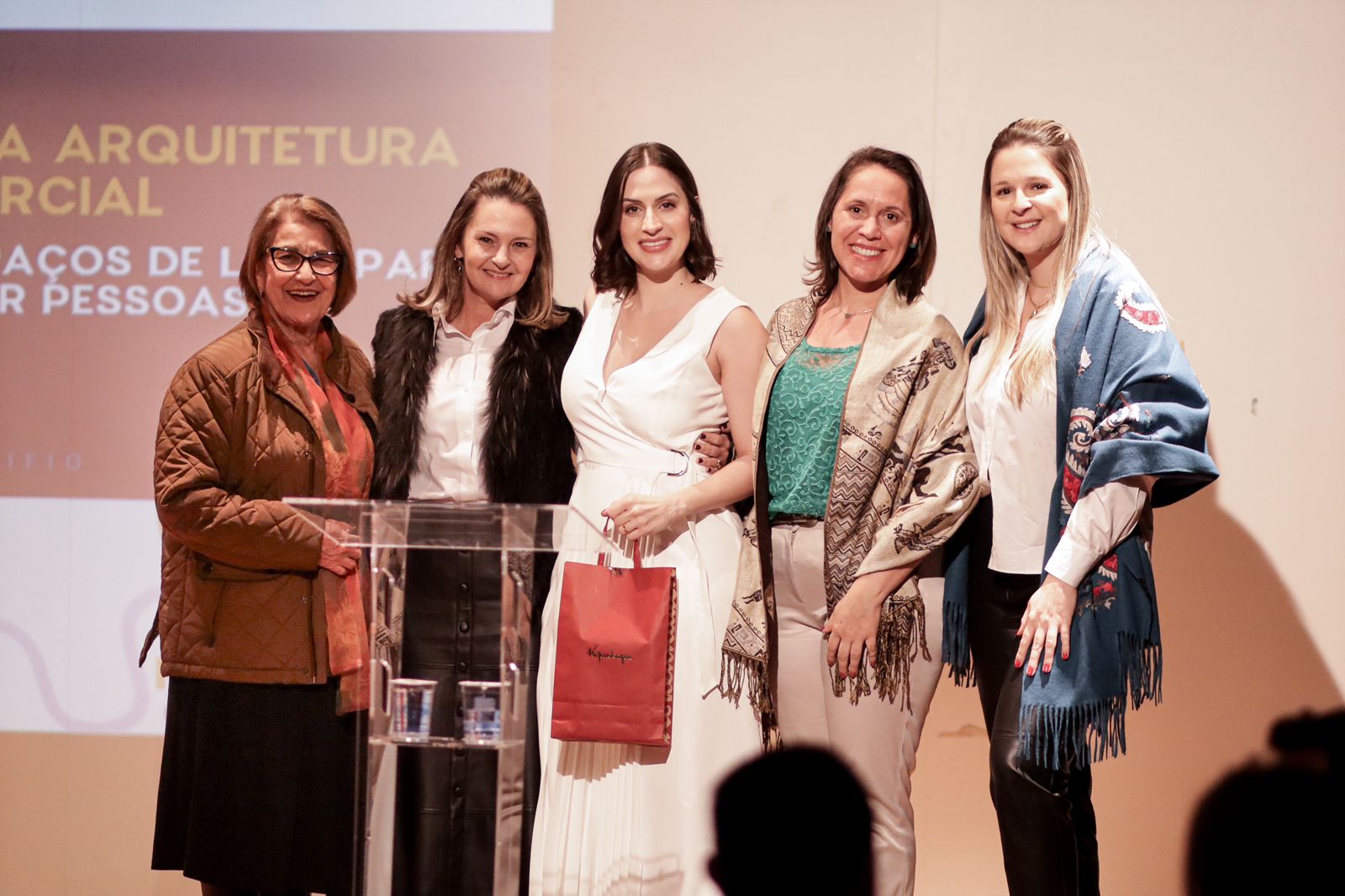 Psicóloga Regina Vidoti, reitora da UNIFIO Gláucia Librelato, Nayara Pires, pró-reitora acadêmica Glauka Archangelo e engenheira Larissa Dias