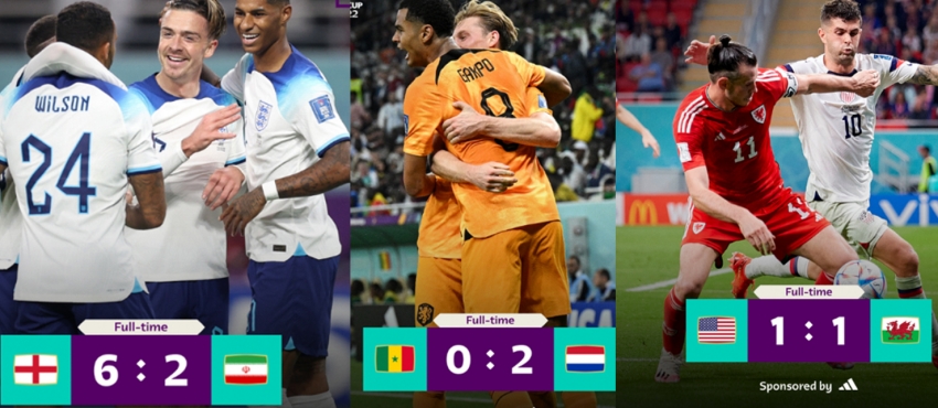 A Inglaterra não tomou conhecimento do Irã e superou o Team Melli por 6 a 2, no estádio Khalifa International, em Al Rayyan. O triunfo encerrou um jejum de oito meses (ou seis jogos) sem vitórias dos campeões mundiais de 1966 em partidas oficiais. O confronto inaugurou o Grupo B do Mundial, que também reúne País de Gales e Estados Unidos, que empataram mais tarde em 1 a 1.