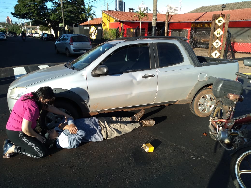 De acordo com informações o veiculo Fiat Strada seguia sentido centro-bairro pela Avenida Jacinto Sá, quando a motoneta cruzou a Avenida Domingos Perino e colidiu contra a caminhote. O senhor que estava na moto sofreu ferimentos sem muita gravidade, segundo o Corpo de Bombeiros.