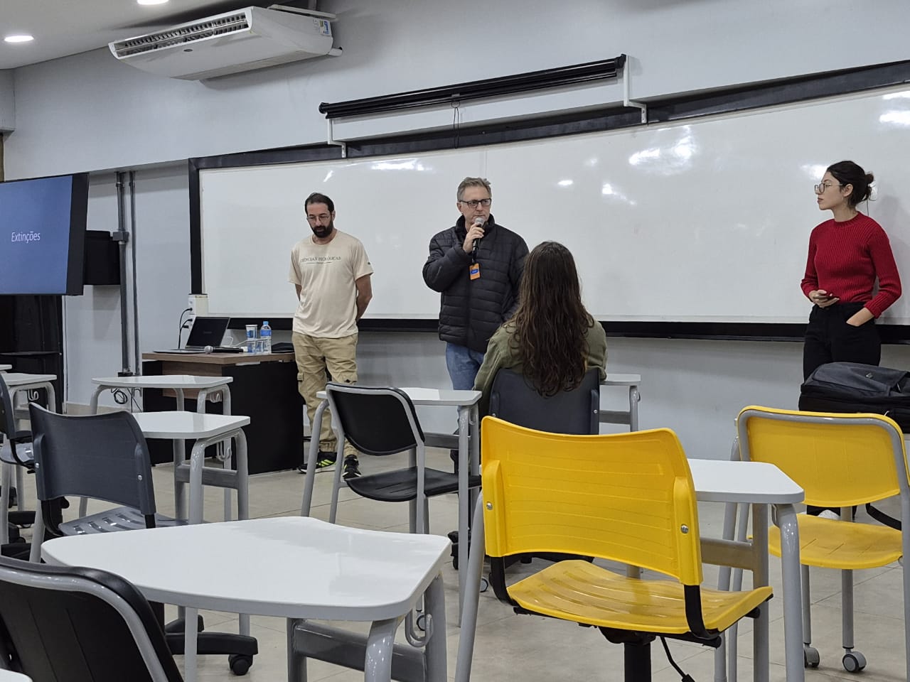 No dia 29, foi realizada a palestra “Extinções em Massa ao Longo da História Geológica”, com o palestrante prof. doutor Ariel Milani Matine, da UENP (Universidade Estadual do Norte Pioneiro), que apresentou os diversos eventos marcantes da história geológica da Terra, nos quais uma grande quantidade de espécies desapareceu em um intervalo de tempo geologicamente curto.