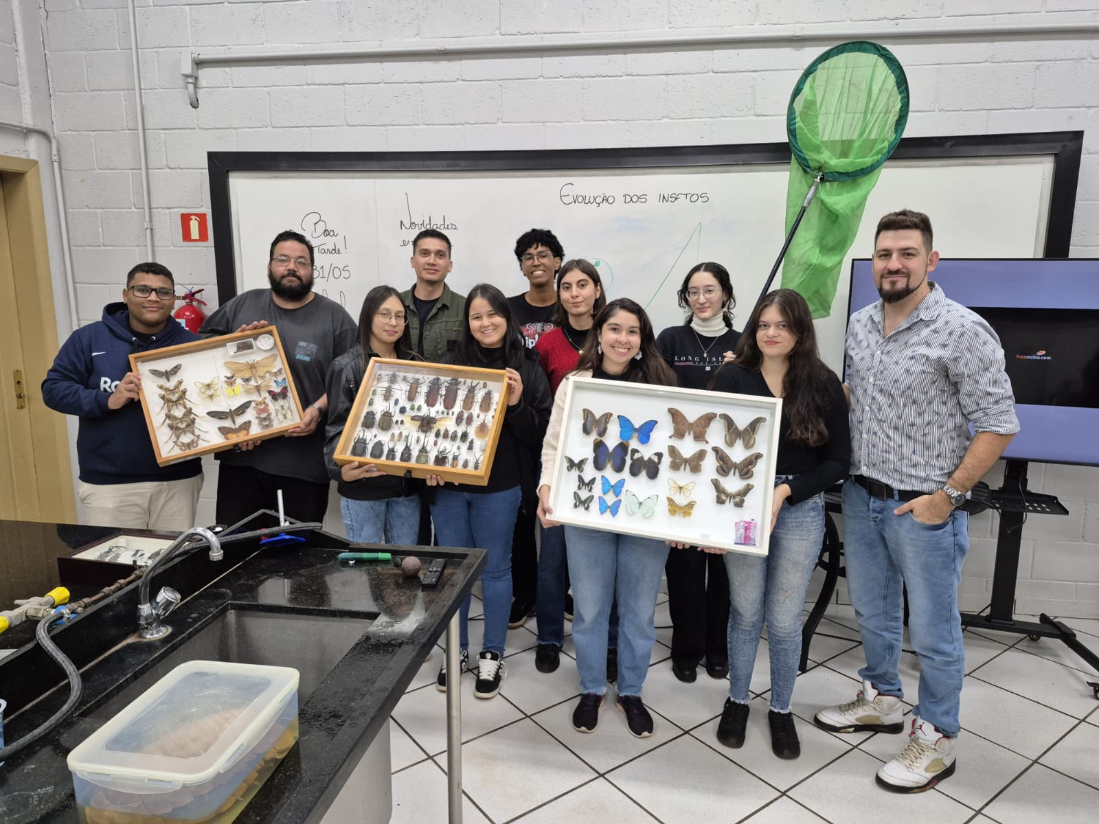 No dia 31 de maio, ocorreu o Ciclo de Minicursos Presenciais, que no Laboratório L-01 contou com o especialista técnico Alisson Wendy de Meira Machado (UNIFIO), que aplicou o minicurso “O Uso de Drone no Monitoramento Ambiental”. Na ocasião, Alisson explanou sobre as possibilidades do uso de drones na agricultura, assim como as diversas potencialidades do uso de novas tecnologias, voltadas para maior produtividade. Já no Laboratório L-04, ocorreu o minicurso “Biodiversidade em insetos: curiosidades, principais grupos, coleta e grandes coleções entomológicas do Brasil”, que contou com a presença do doutor Rafael Barros, da UEL – Universidade Estadual de Londrina. O professor explanou sobre a grande diversidade de insetos, além de técnicas de coleta e preservação dos principais grupos taxionômicos de insetos do Brasil. Além disso, doutor Rafael trouxe uma enorme coleção de espécimes preservados em caixas entomológicas e também espécimes vivos de sua criação, momento em que todos os participantes puderam pegar nas mãos indivíduos de aracnídeos, larvas e adultos de insetos e assim, foi um momento em que os participantes demonstraram grande entusiasmo com a atividade realizada neste minicurso.