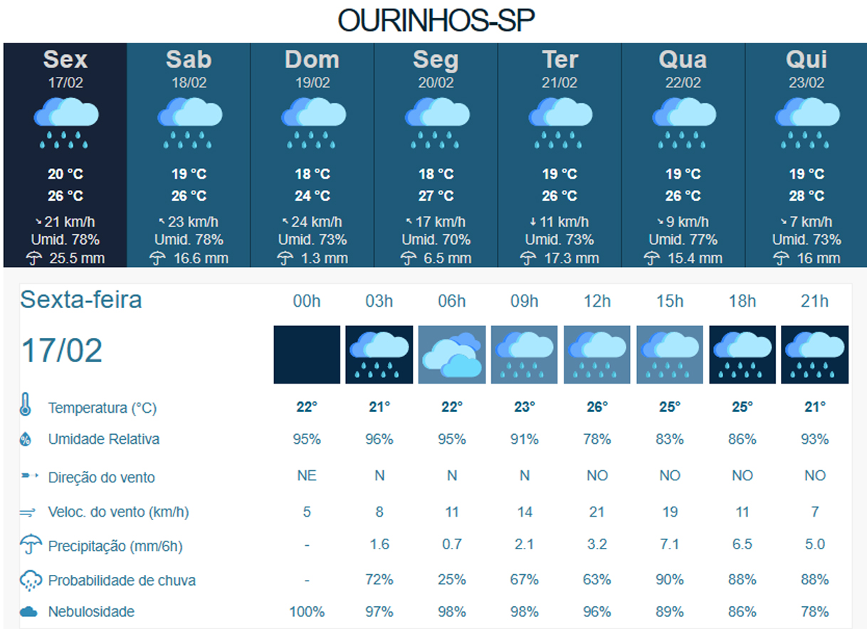 Para quem mora em São José dos Campos, Barretos e Franca, o total de chuvas pode alcançar a 100 milímetros. Na capital e região metropolitana, Campinas, Sorocaba, Ribeirão Preto e Araraquara, o volume total de precipitações é de até 80 milímetros.