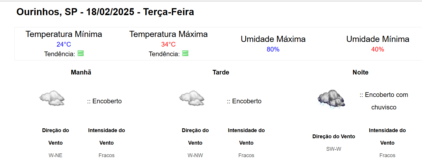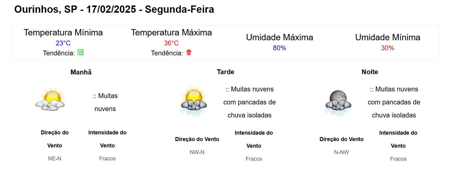 A Defesa Civil do Estado de São Paulo emitiu um alerta para altas temperaturas entre domingo (16) e quarta-feira (19), afetando tanto a capital quanto o interior do estado. Em Ourinhos, a previsão indica que os termômetros podem atingir a marca de 36ºC, com possibilidade de chuvas isoladas durante a tarde e a noite desta segunda-feira (17), conforme informações do Instituto Nacional de Meteorologia (Inmet).