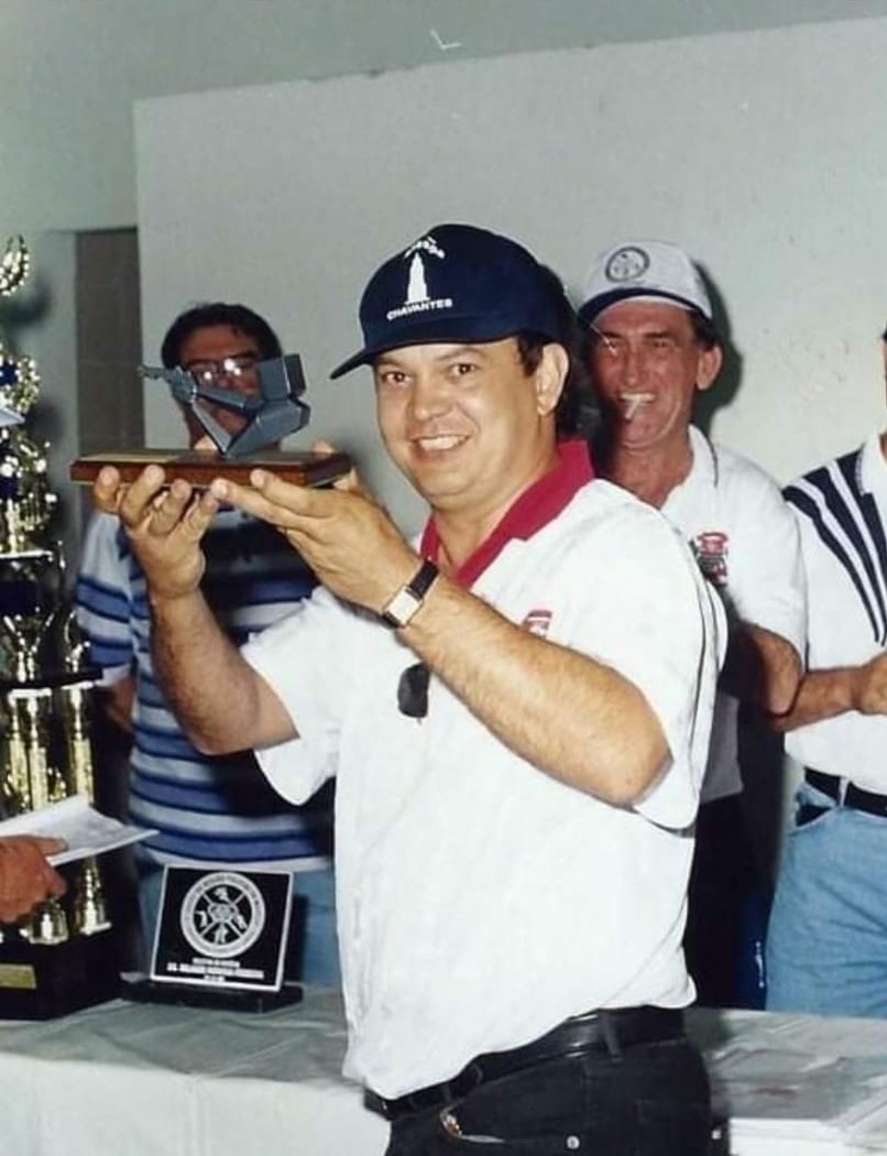 Dr. Reginaldo levantando troféu com amigos da polícia (Foto: Arquivo Pessoal)