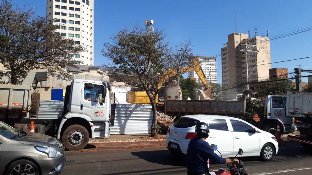 A demolição de um imóvel, que abrigava escritórios e lojas comerciais, causou grande mobilização, na manhã desta quarta-feira, 17, na área central de Ourinhos, na Rua Expedicionário, esquina com a Rua Antônio Carlos Mori. O local será substituído por uma nova farmácia, mesmo com uma já existente em frente, no número 339 da Rua Expedicionário.