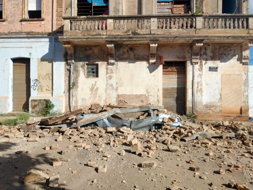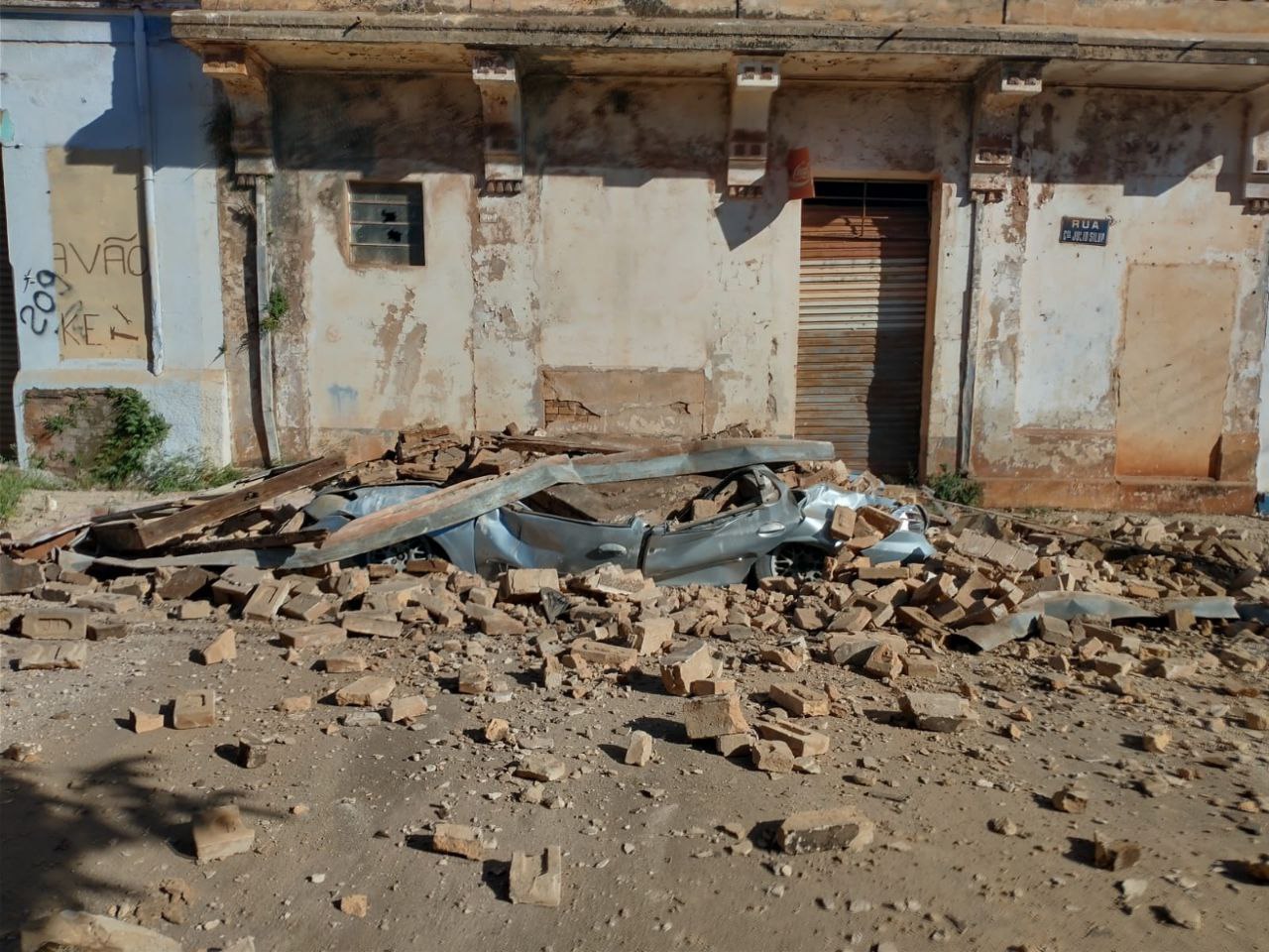 O desabamento resultou em danos de grande monta no automóvel, deixando destroços espalhados pela via pública. As autoridades locais foram acionadas para avaliar a situação e garantir a segurança da área.