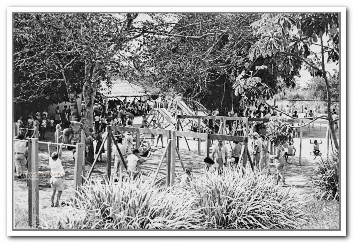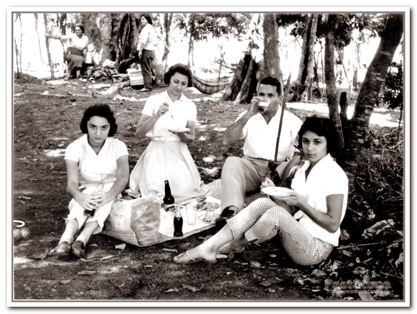 As mulheres se acomodavam em pic nic, no bosque ensaibrado ladeado pela pista de bocha, o campo de footbol, o rio Paranapanema, e a pontinha que limitava a área social, a parte da manhã era livre, dividia o dia com a liberação do grande churrasco coletivo no espeto de bambu, assado na enorme churrasqueira improvisada com tijolos.