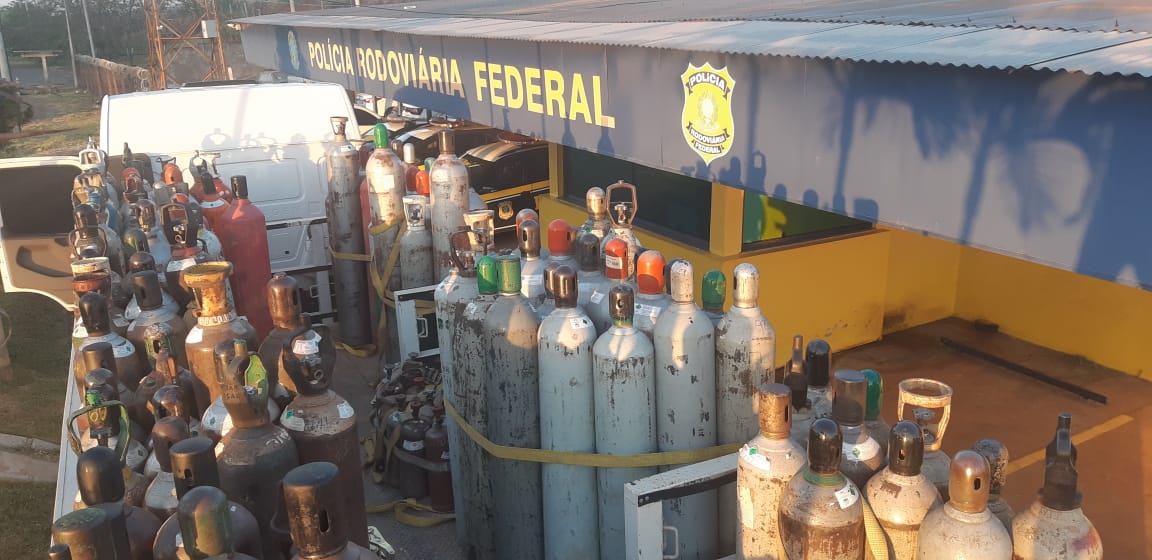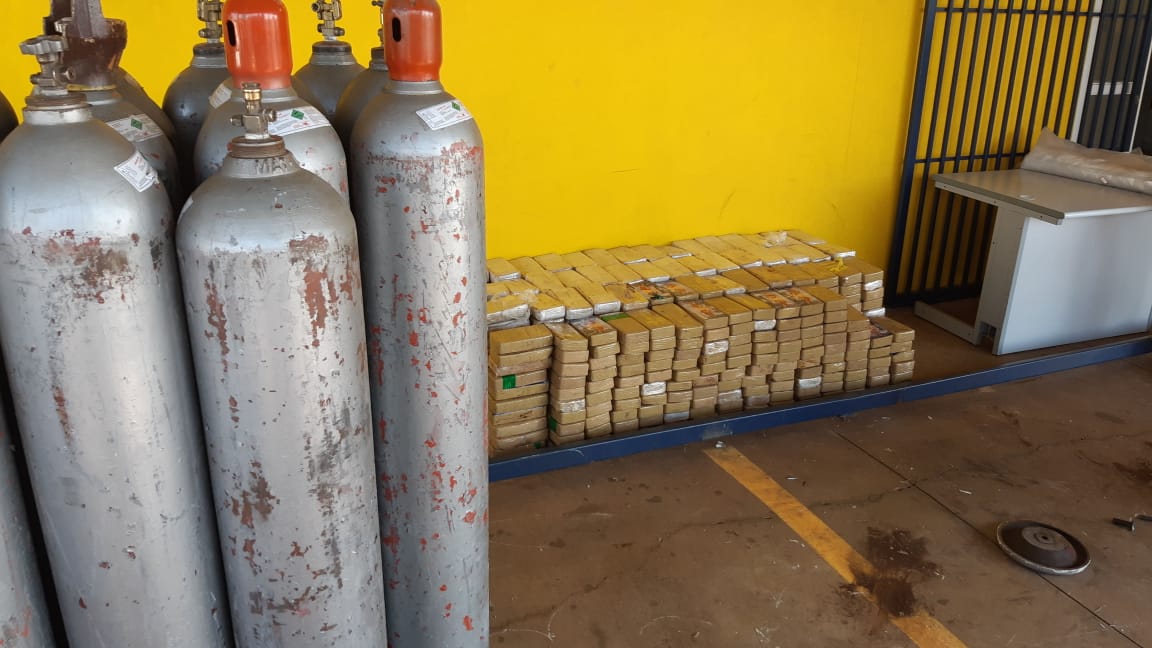 Droga estava escondida em caminhão de cilíndros de oxigênio (Foto: Divulgação/PRF)