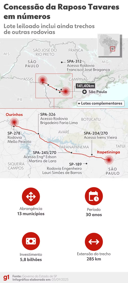 O Lote Paranapanema foi leiloado em 5 de setembro, em São Paulo, e teve como vencedora a empresa Infra BR V Missouri Holding, do grupo Pátria, que ofereceu um desconto de 11,6% sobre a contraprestação pública máxima. O pacote contempla 285 quilômetros de rodovias, abrangendo 13 municípios, incluindo Ourinhos, Chavantes, Ipaussu, Canitar, Bernardino de Campos, Piraju e Tejupá.