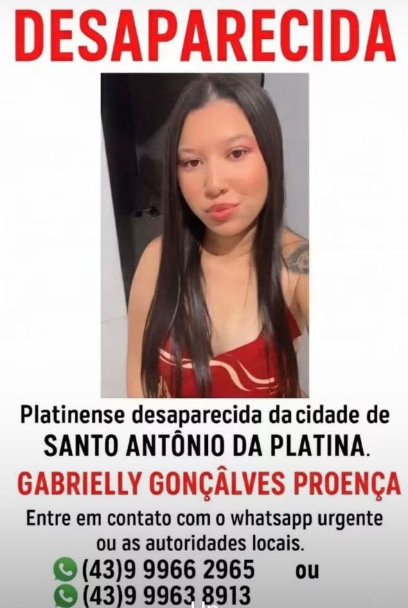 A família de Michael Custódio Cesário também confirmou o desaparecimento e pede que qualquer informação seja comunicada pelo telefone (43) 9 9970-7300.