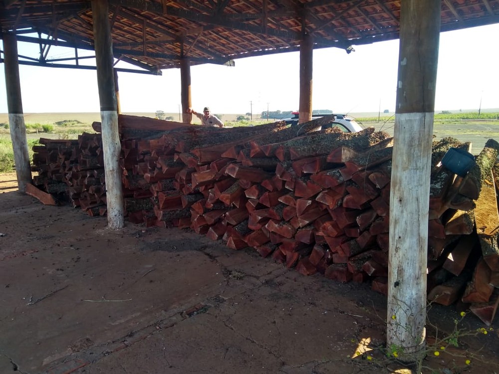 E em Cândido Mota, o dono de uma fazenda foi multado por derrubar árvores nativas. Durante patrulhamento, a equipe policial encontrou um amontoado de madeira aparentando ser nativa em formas de lascas.