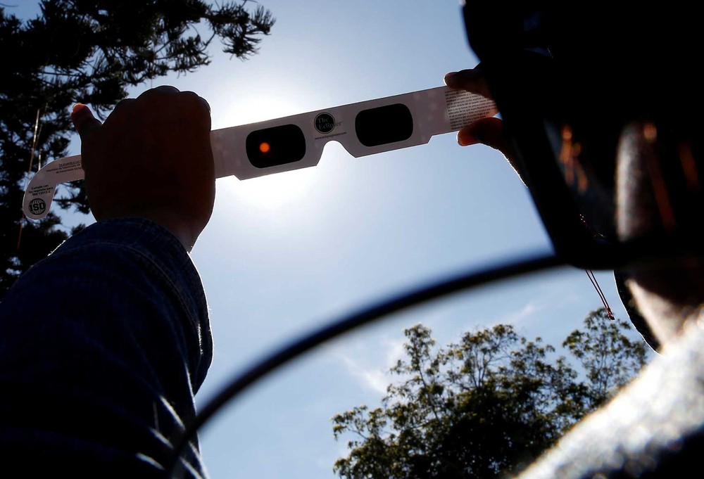 Os eclipses solares, parciais ou totais, não podem ser assistidos a olho nu. É importante comprar um óculos especial. Não adianta: existe o risco de criar uma lesão permanente na visão. Já tentou olhar fixamente para o Sol na praia? Dói, e isso acontece porque os raios não fazem bem para os olhos.