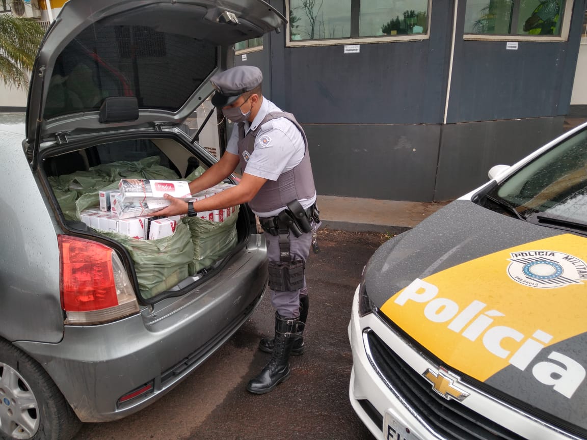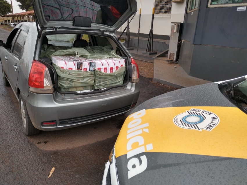 HISTÓRICO: Durante fiscalização a equipe do Policiamento Rodoviário da 3Cia do 2BPRv com vistas ao tráfico de drogas e demais ilícitos penais abordou o veículo Fiat/Palio placas de Piracicaba/SP e durante a entrevista com o condutor I.N de 48 anos e passageiro F.A.N de 41 anos foi notado um certo nervosismo dos ocupantes e durante a vistoria veicular foi localizado vários pacotes de cigarros de procedência Paraguaia.