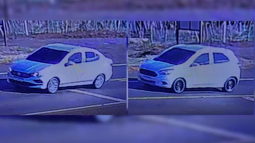 Imagens captadas por câmeras de rua mostram dois veículos sem placa suspeitos de participar do assalto — Foto: Polícia Civil/Divulgação