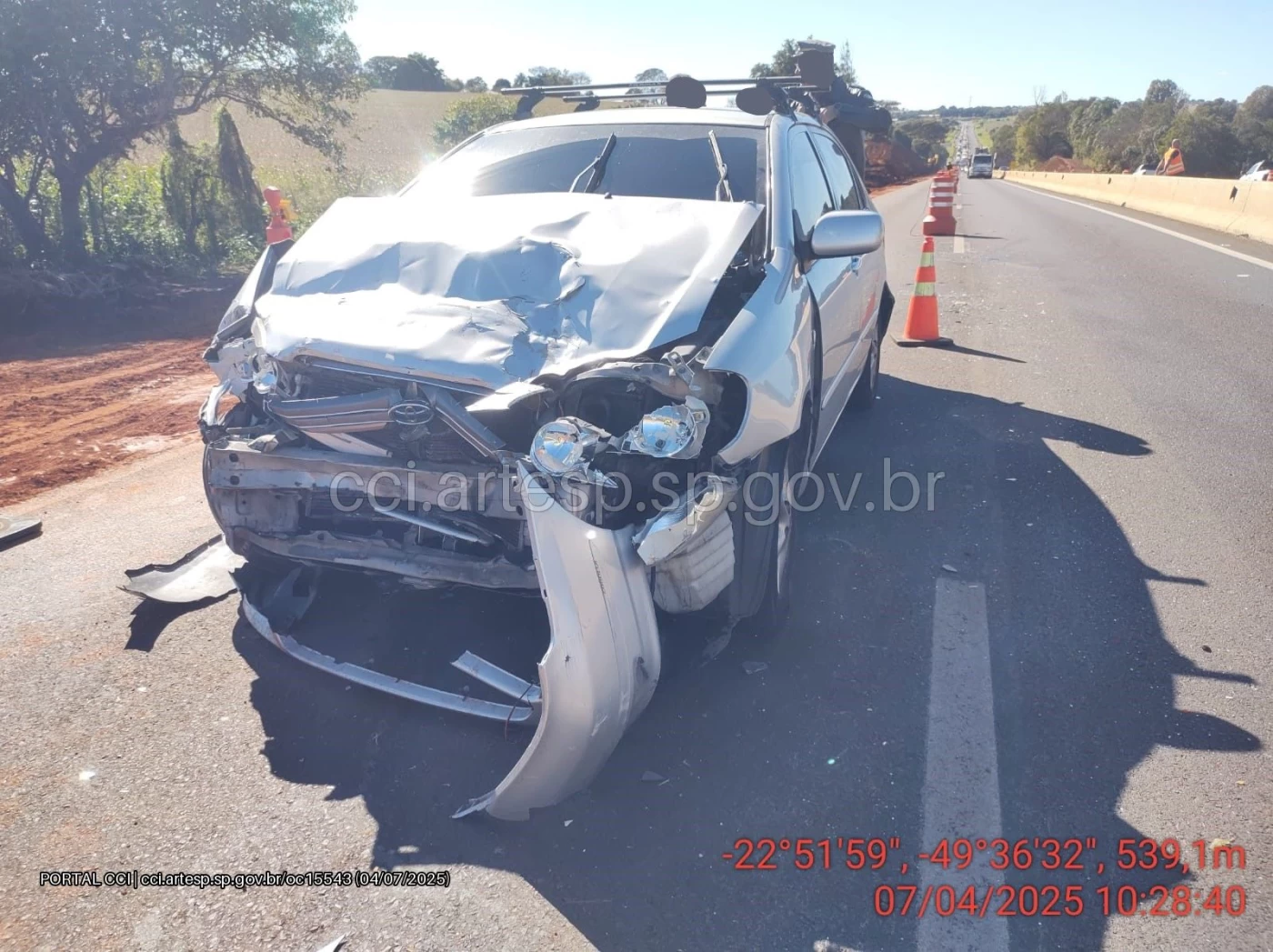 - Pouco depois, todas as faixas e o acostamento do sentido oeste foram totalmente bloqueados para atendimento à ocorrência;