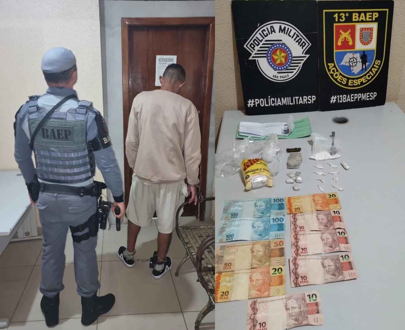 Na madrugada deste domingo, 16 de junho, a Equipe K9 do 13° Batalhão de Ações Especiais de Polícia (BAEP) da Polícia Militar efetuou a prisão de Leandro de O. C., de 39 anos, em Ourinhos (SP). A ação policial ocorreu após a equipe receber informações de que um indivíduo, utilizando tornozeleira eletrônica devido a Saída Temporária Junina, estava praticando tráfico de drogas em sua residência, localizada na Rua Maria Petronilha de Almeida, no Residencial Vandelena Moraes Freire.
