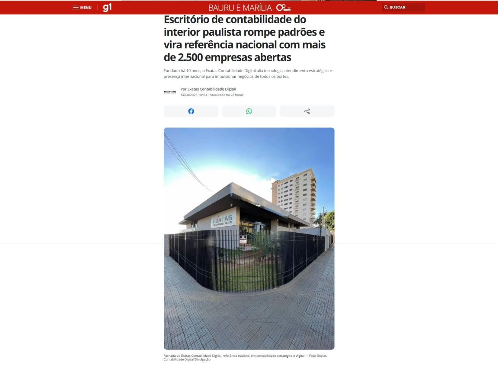 O destaque no G1 reforça o posicionamento do Exatas como parceiro estratégico para empresas de todos os portes, oferecendo soluções personalizadas que vão muito além da burocracia, transformando contabilidade em resultado.