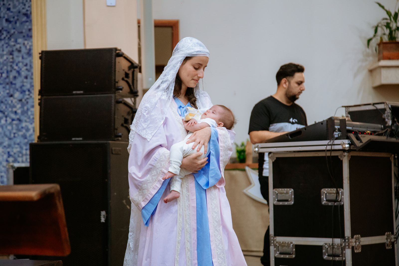 A apresentação seguirá uma ordem cronológica dos eventos bíblicos, desde o chamado angelical à maternidade de Maria até o nascimento do Menino Príncipe, simbolizando a paz ao mundo. O espetáculo contará com dramatizações ao vivo, interpretadas por Adriane Cristini de Giácomo Martins e Rafael Achôa de Camargo Barro, acompanhando a narração dos textos adaptados por Reynaldo Puebla e Ana Abe.