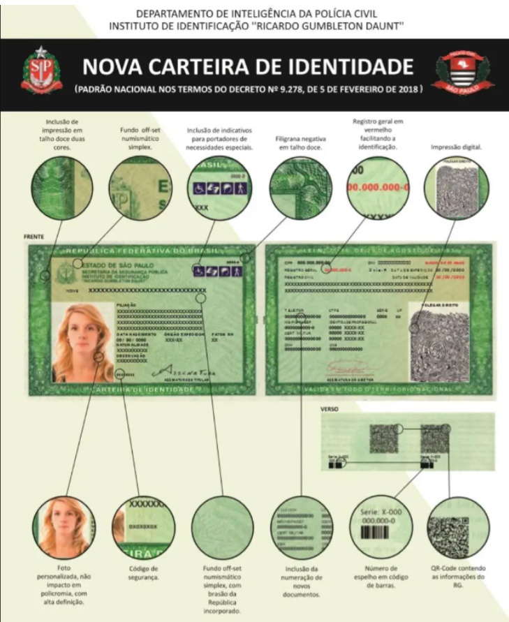 De acordo com a Secretaria de Segurança Pública (SSP/SP), além de incluir novos dispositivos que aumentarão a segurança contra falsificação, o novo RG traz a possibilidade da inclusão de nome social sem a necessidade de alteração no registro civil.