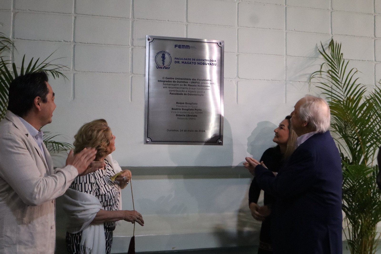 A Faculdade de Odontologia do Centro Universitário de Ourinhos – UNIFIO ganhou a denominação de Dr. Masato Nobuyasu. A homenagem, marcada com o descerramento de uma placa instalada no saguão de entrada do Bloco da Faculdade, foi realizada na noite de terça-feira, 26 de agosto, durante uma emocionante cerimônia.