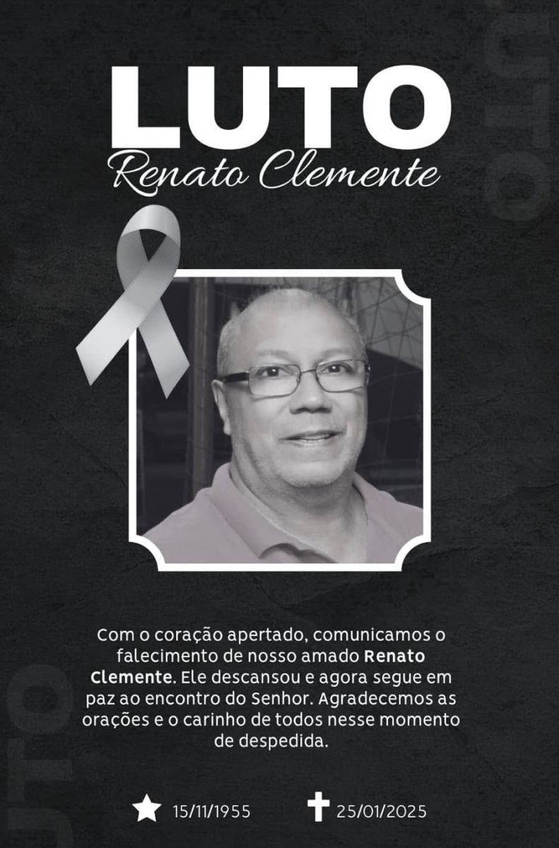 Renato Clemente, de 69 anos, faleceu em Ourinhos. Seu velório ocorre no Velório São Benedito, com sepultamento marcado para este domingo (26), às 15h, no Cemitério Municipal de Ourinhos.