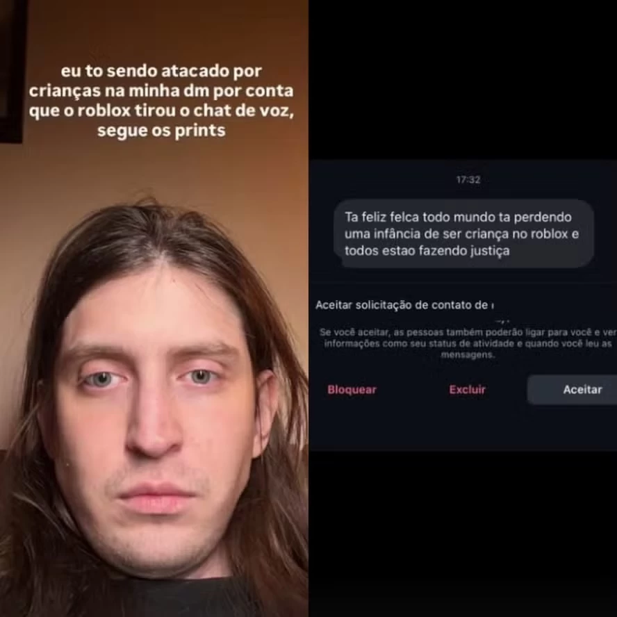 O influenciador digital Felca afirmou ter se tornado alvo de ataques e ameaças nas redes sociais após mudanças recentes anunciadas pelo Roblox, plataforma de jogos com público majoritariamente infantil. Em publicações feitas nos Stories do Instagram, na madrugada desta quinta-feira, ele relatou o recebimento de mensagens agressivas, atribuídas principalmente a crianças que o responsabilizam pela retirada do chat de voz do jogo.